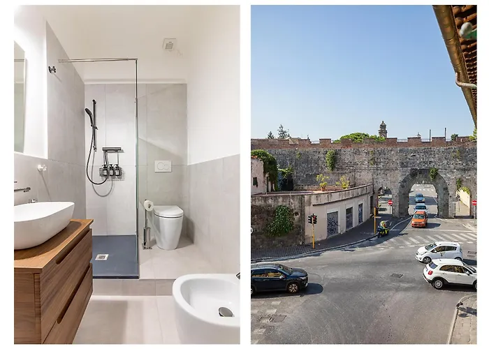 都市の景色を見渡す3つ星Casa Vacanza Torre Pendente - Grandi Camere Comfort ピサホテルは、サント・セポルクロ教会から徒歩で10分の場所に位置しています。